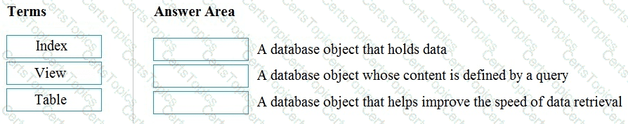 To answer, drag the appropriate term from the column on the left to its description on the right. Each term may be used once, more than once, or not at all.