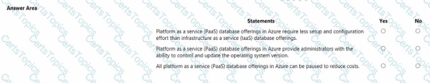 For each of the following statements, select Yes if the statement is true. Otherwise, select No.