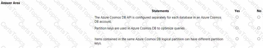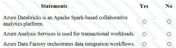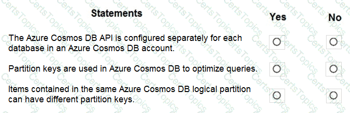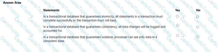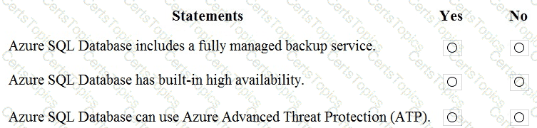 For each of the following stateme nts, select Yes if the statement is true. Otherwise, select No.