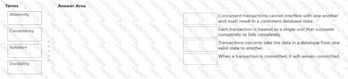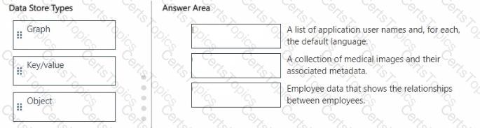 To answer, drag the appropriate data store type from the column on the left to its scenario on the right. Each data store type may be used once, more than once, or not at all.