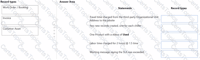 When performing a quality check, what will the back office employee expect to see as a result of this service call? To answer, drag the appropriate record type to the correct statement. Each record type may be used once, more than once, or not at all. You may need to drag the split bar between panes or scroll to view content.