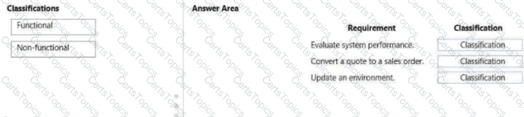 What is the classification for each requirement? To answer, drag the appropriate classifications to the correct requirements. Each classification may be used once, more than once, or not at all. You may need to drag the split bar between panes or scroll to view content.