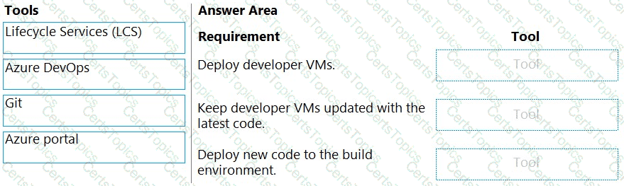 What should you recommend? To answer, drag the appropriate tools to the correct requirements. Each tool may be used once, more than once, or not at all. You may need to drag the split bar between panes or scroll to view content.