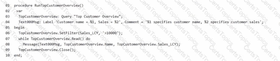 You create a query that contains a procedure to display the top customers.