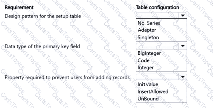 Which table field property should you use? To answer, select the appropriate options in the answer area.