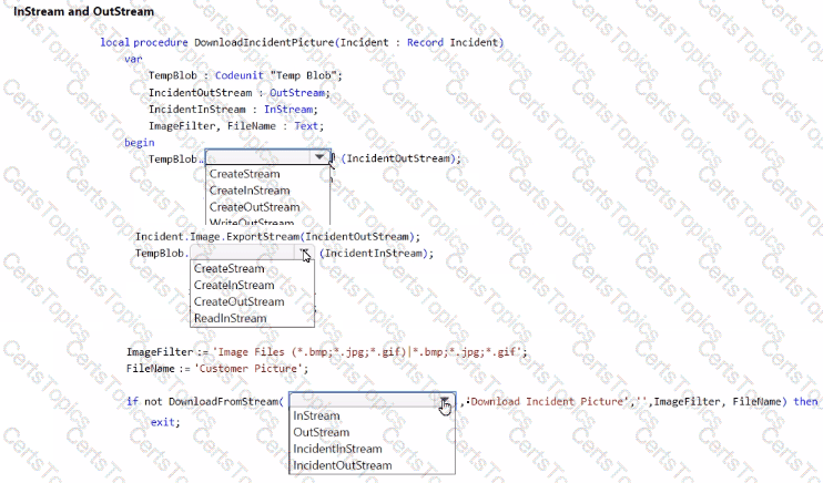 How should you complete the code segment? To answer select the appropriate options in the answer area.