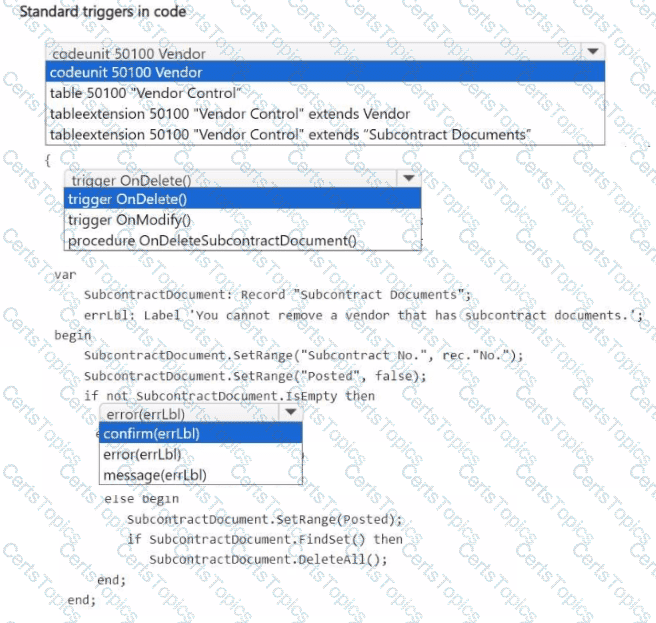 Which instructions or trigger should you use? To answer, select the appropriate options in the answer area