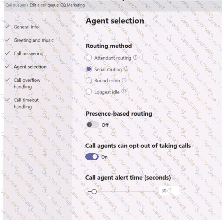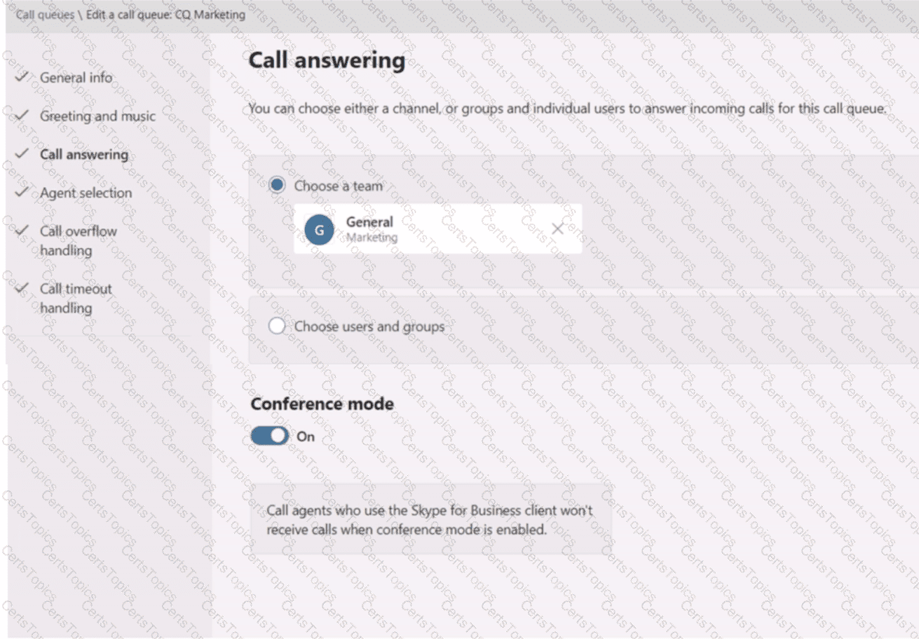 The Call answering settings are configured as shown in the Call answering exhibit. (Click the Call answering tab.)