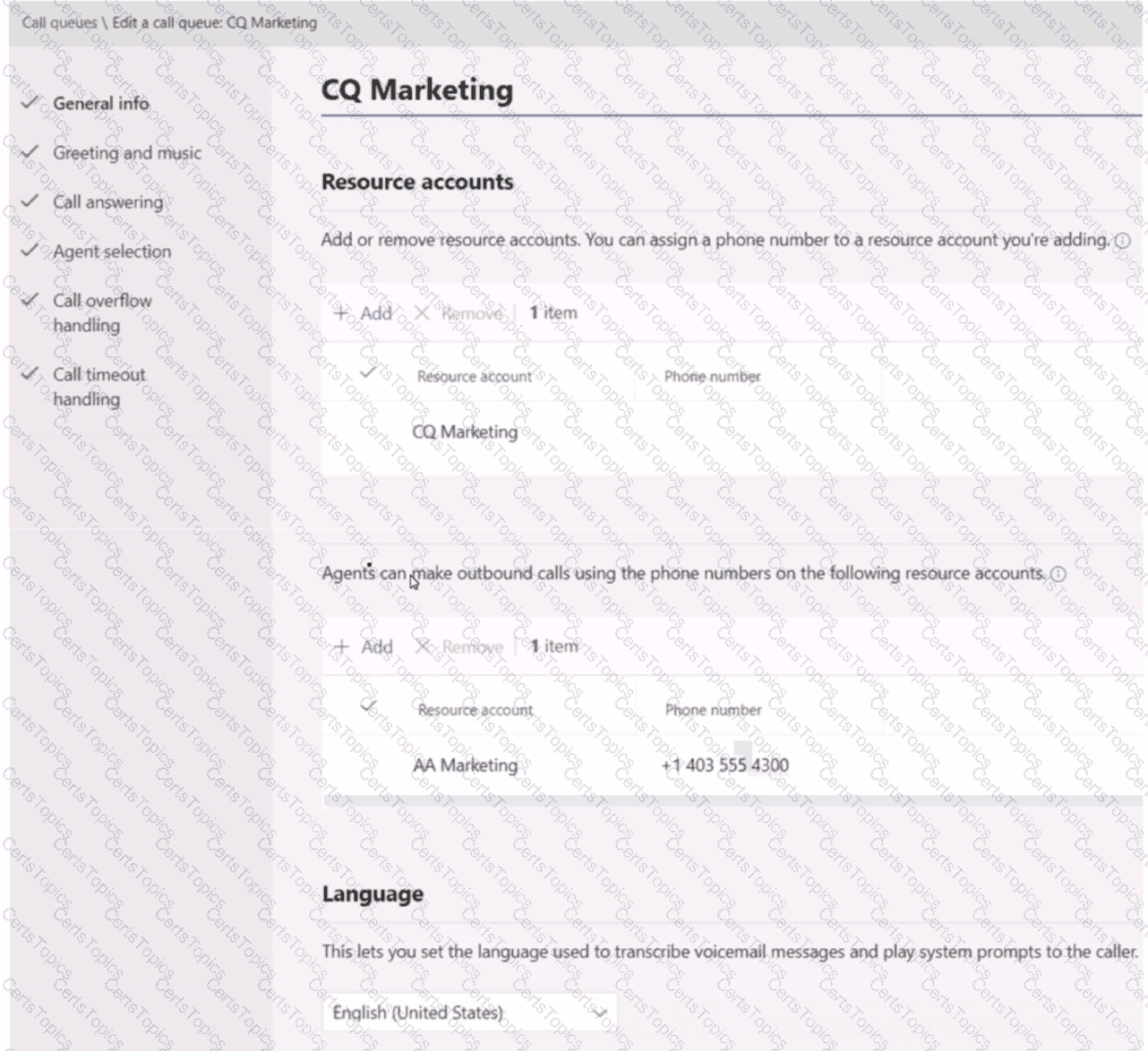 You create a call queue named CQ Marketing.
