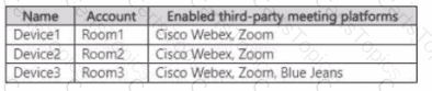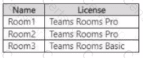 You have a Microsoft 365 E5 subscription that is linked to a Microsoft Entra tenant. The tenant contains the Microsoft Teams Rooms accounts shown in the following table.