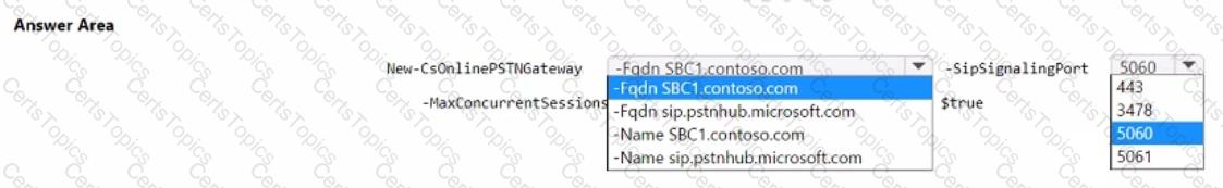 You are deploying Direct Routing by using a certified Session Border ControNer CSBC). The FQDN of the SBC is sbc1.contoso.com. You use signaling port 5067.