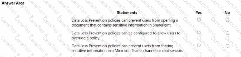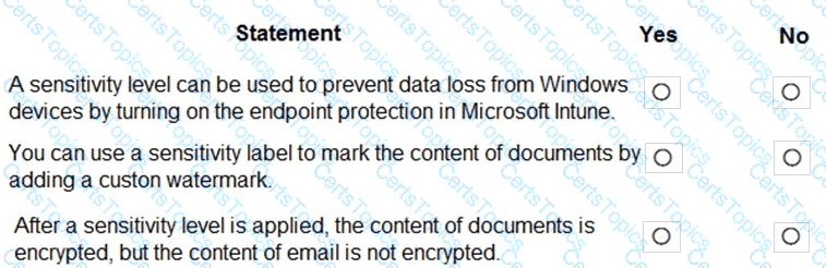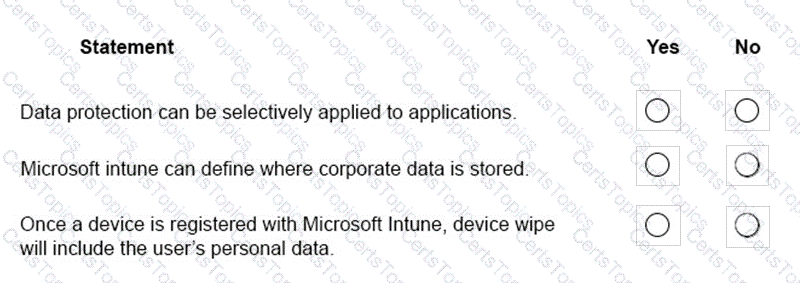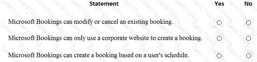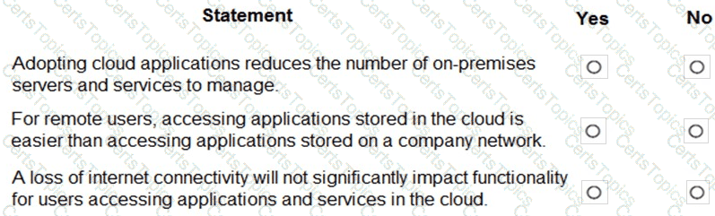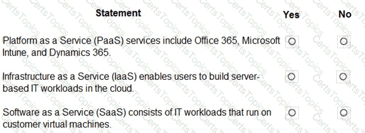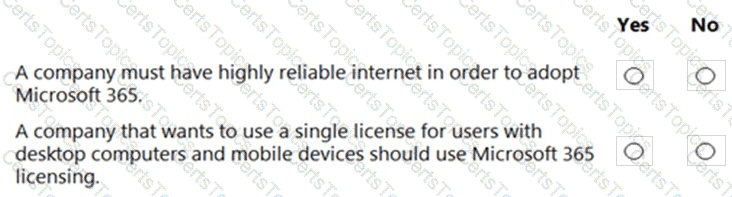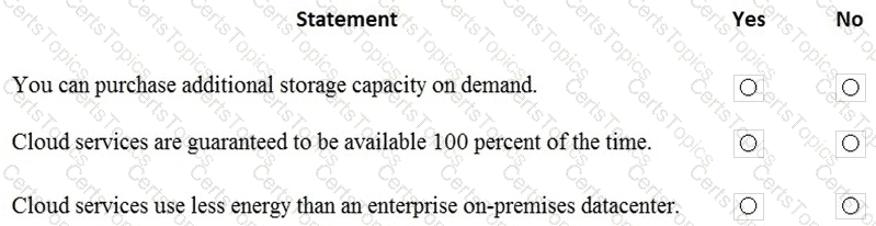 For each of the following statements, select Yes if the statement is true. Otherwise, select No.