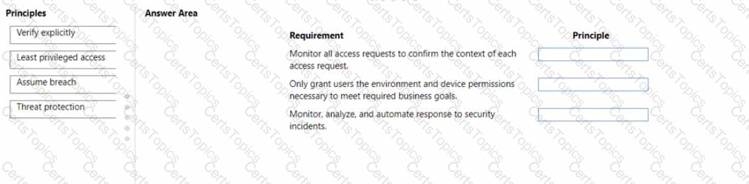 Which Zero Trust security principle should yourecommend? To answer, drag the appropriate principles to the correct requirements. Each principle may be used once, more than once, or not at all. You may need to drag the split bar between panes or scroll to view content