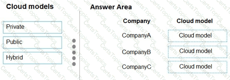 Match each cloud modelto the appropriate company. To answer, drag the appropriate cloud model from the column on the left to the company on the right. Each cloud model may be used once, more than once, or not at all.