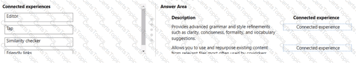 Which connected experiences should you describe? TO answer, drag the appropriate connected experiences to the correct descriptions. Each connected experience