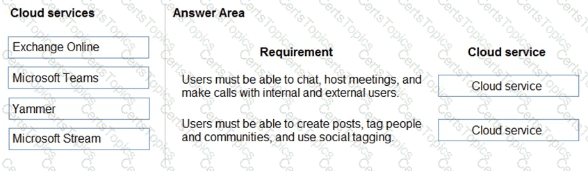 Which cloud service should you choose for eachrequirement? To answer, drag the appropriate cloud services to the correct requirements. Each cloud service may be used once, more than once, or not at all. You may need to drag the split bar between panes or scroll to view content.