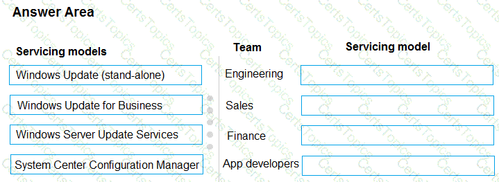 You need to recommend the appropriate servicing models toupdate employee devices.