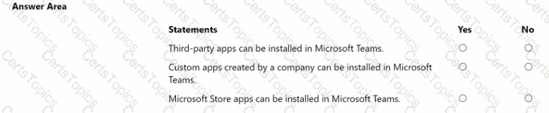 A company is evaluating Teams. The company plans to use collaborative apps.