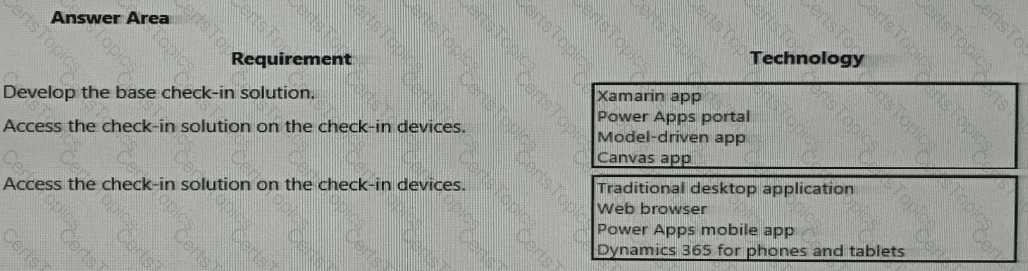 You need to embed the check-in solution into the communication solution. To answer, select the appropriate options in the answer area.
