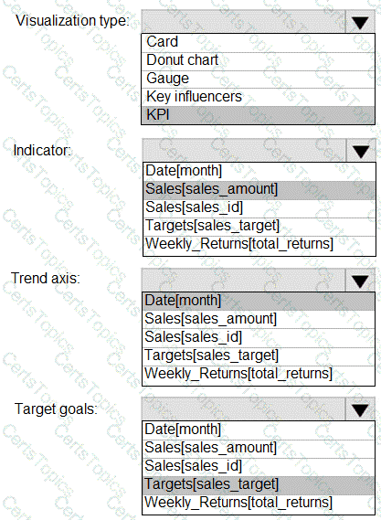 How should you create the visualization? To answer, select the appropriate options in the answer area.