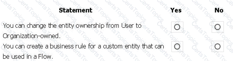 For each of the following statements, select Yes if the statement is true. Otherwise, select No.