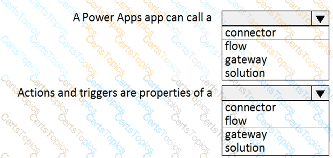 Which two objects are provided to Power Apps by the connector? Each correct answer presents a complete solution.