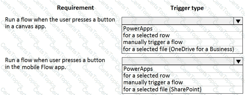 What trigger types should you recommend? To answer, select the appropriate options in the answer area.