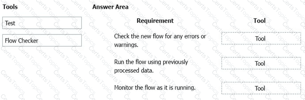 Which flow editing utilities should you use? To answer, drag the appropriate tools to the correct requirements. Each tool may be used once, more than once, or not at all You may need to drag the split bar between panes or scroll to view content.