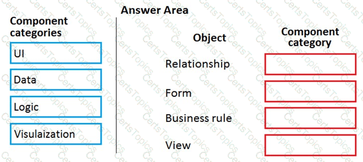 Which component categories should you use? To answer, drag the appropriate component categories to the correct objects. Each component category may be used once, more than once, or not at all. You may need to drag the split bar between panes or scroll to view content.