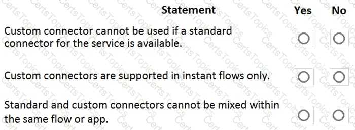 A company plans to implement Power Apps in a Power Platform environment.
