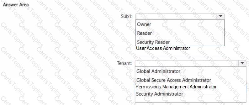 Which role should you assign for Sub1, and which role should you assign to User1 for the tenant? To answer, select the appropriate options in the answer area.