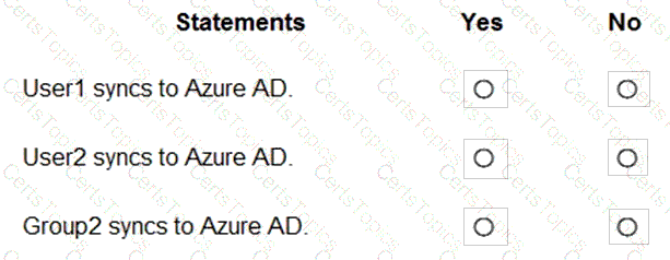 Your network contains an on-premises Active Directory domain named contoso.com. The domain contains the objects shown in the following table.