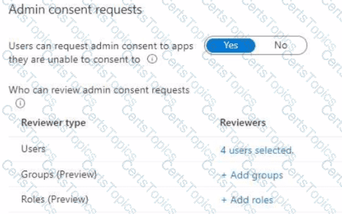You configure the Admin consent requests settings as shown in the following exhibit.