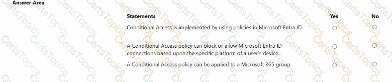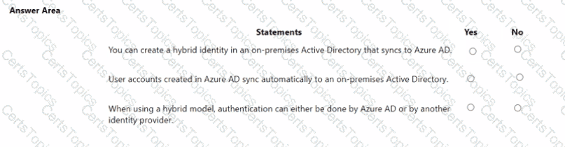For each of the following statements, select Yes if the statement is true. Otherwise, select No.