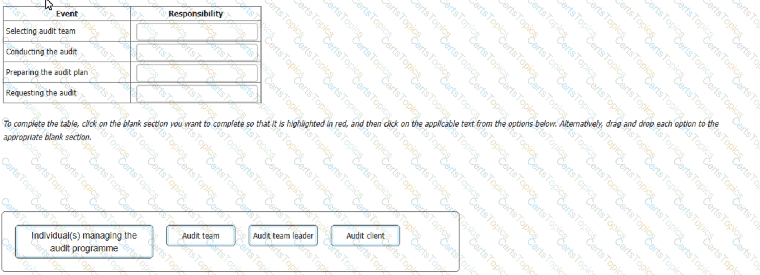 In the context of a third-party audit, match the event with the responsibility for conducting it.