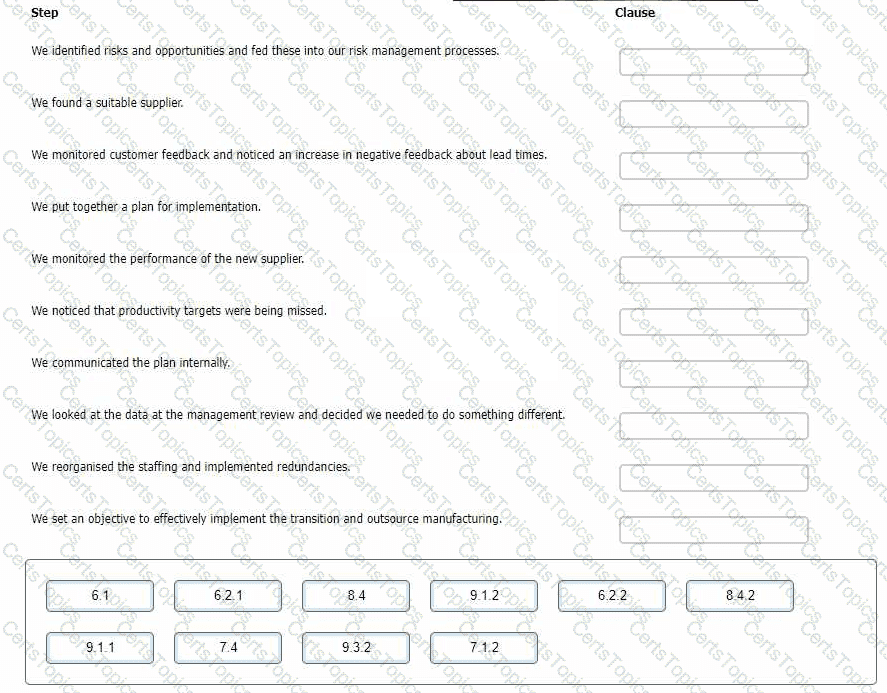 click on the ISO 9001 clauses listed below. Alternatively, drag and drop each clause to show which step the