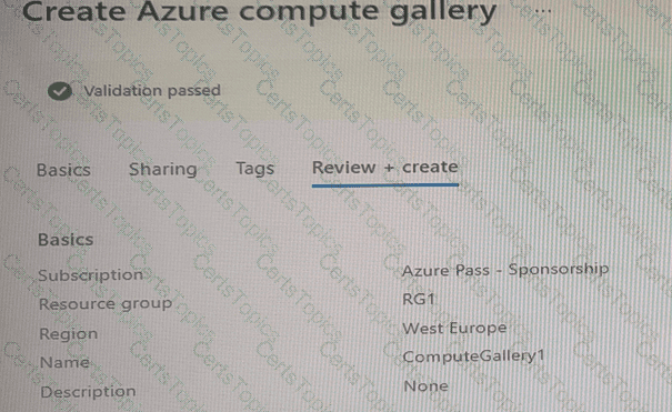 You create an Azure Compute Gallery as shown in the Azure compute gallery exhibit. (Click the Azure compute gallery tab.)