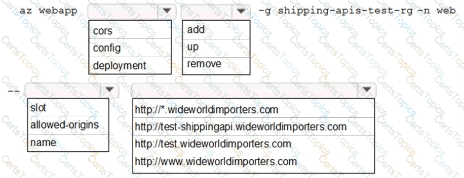 How should you complete the Azure CLI command? To answer, select the appropriate options in the answer area.