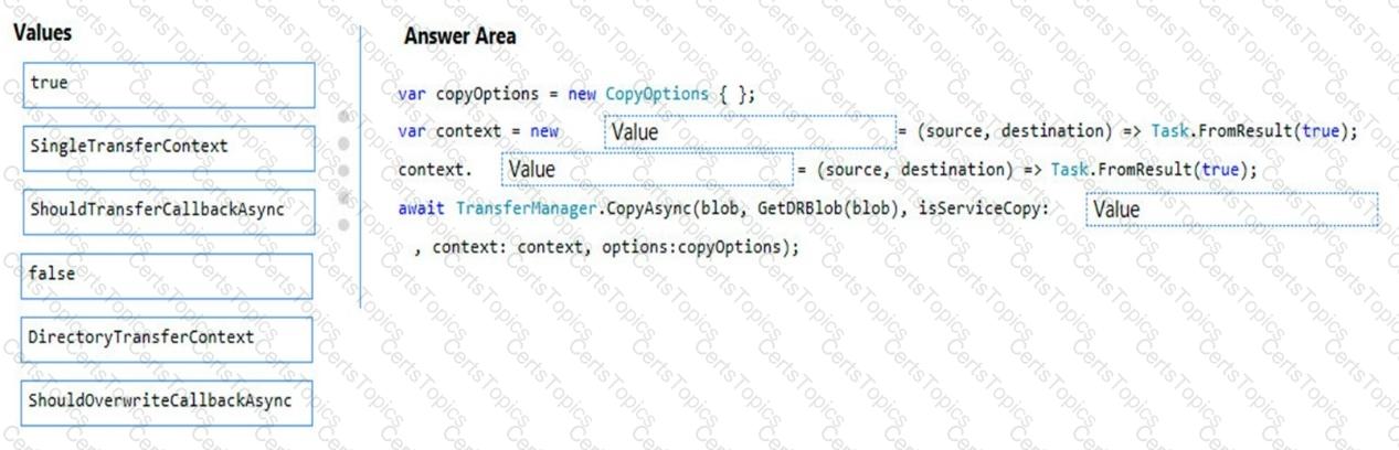 To answer, drag the appropriate code fragments to the correct locations. Each code fragment may be used once, more than once, or not at all. You may need to drag the split bar between panes or scroll to view content.