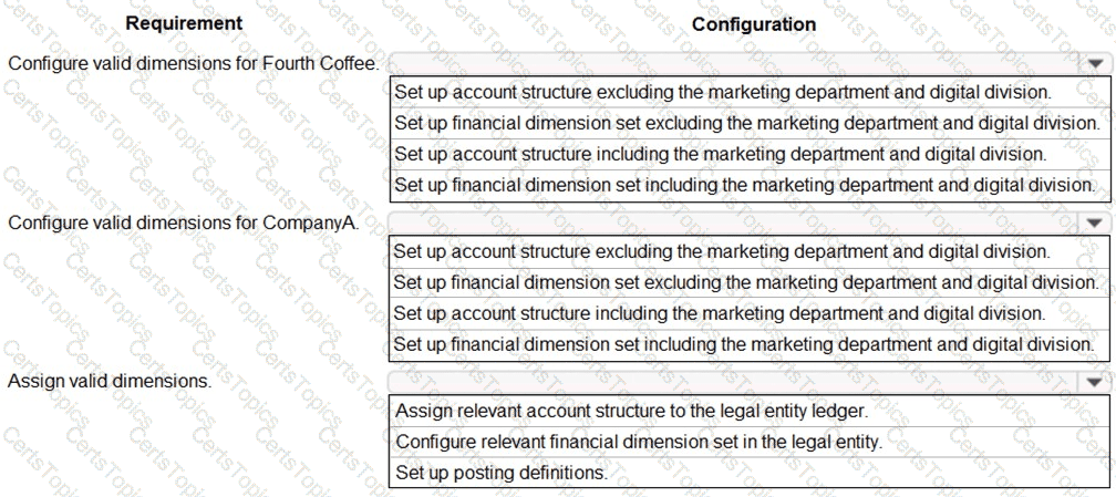 You are a consultant who is implementing Dynamics 365 Finance in your organization.