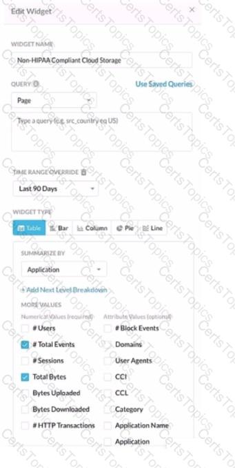 Referring to the exhibit, which query would you use in the Edit Widget window to narrow down the results?