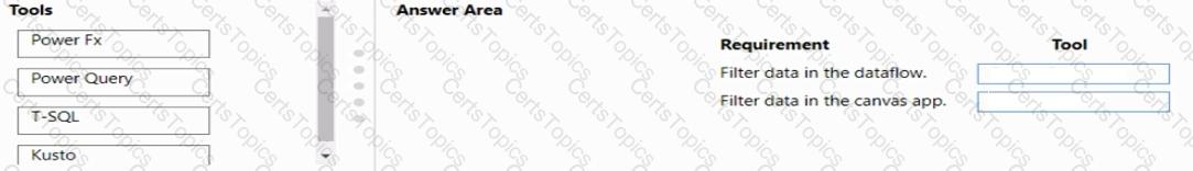 You use a dataflow to move some of the data from the database to Microsoft Dataverse. Users will filter the data by using the app.