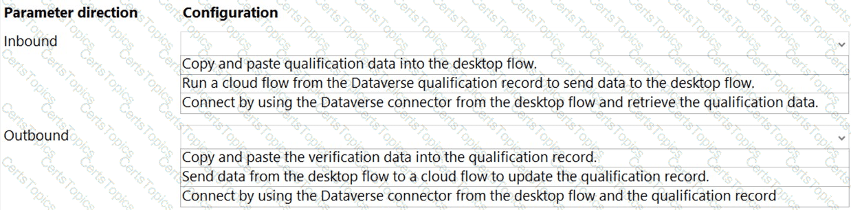 How should you set up the input and output parameters? To answer, select the appropriate options in the answer area.