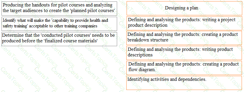 Here are three activities carried out as part of PRINCE2’s recommended approach to planning.