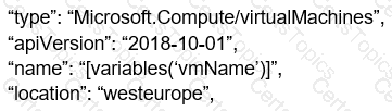 You have an Azure Resource Manager that is used to deploy an Azure virtual machine.