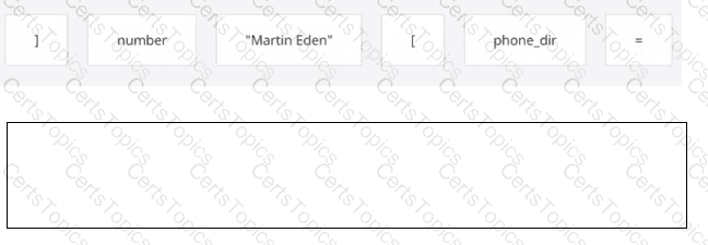 Assuming that the phonc_dir dictionary contains namemumber pairs, arrange the code boxes to create a valid line of code which retrieves Martin Eden's phone number, and assigns it to the number variable.