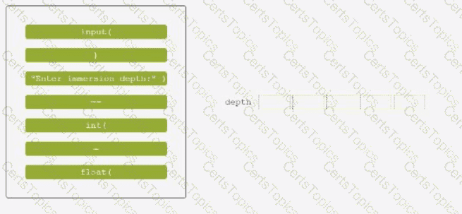 Insert the code boxes in the correct positions in order to build a line of code which asks the user for an integer value and assigns it to the depth variable.