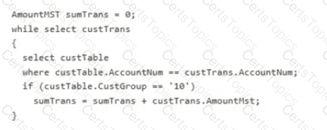 You are performing a review of the code that returns the total sum of transactions for all customers in customer group 10. You observe that the following query takes a long time to complete.
