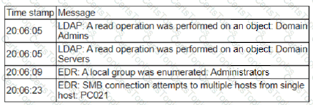 A security analyst is reviewing events that occurred during a possible compromise. The analyst obtains the following log: