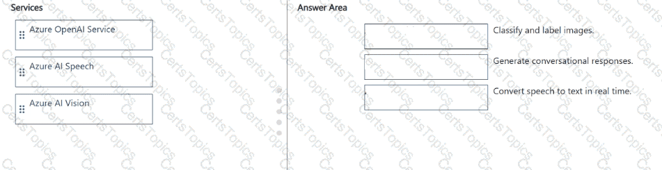 To answer, drag the appropriate service from the column on the left to its capability on the right. Each service may be used once, more than once, or not at all.
